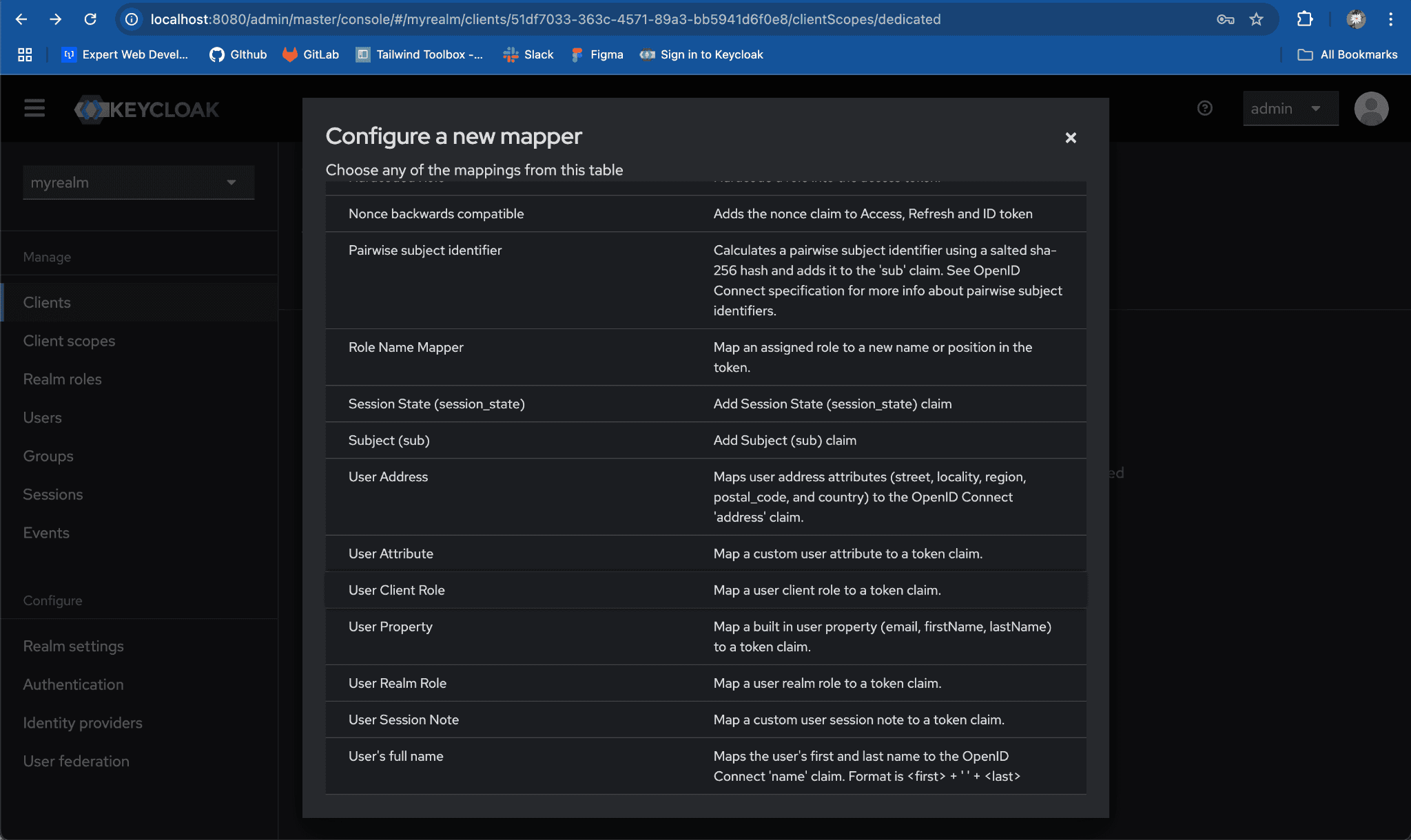 myrealmfrom the list of realms.