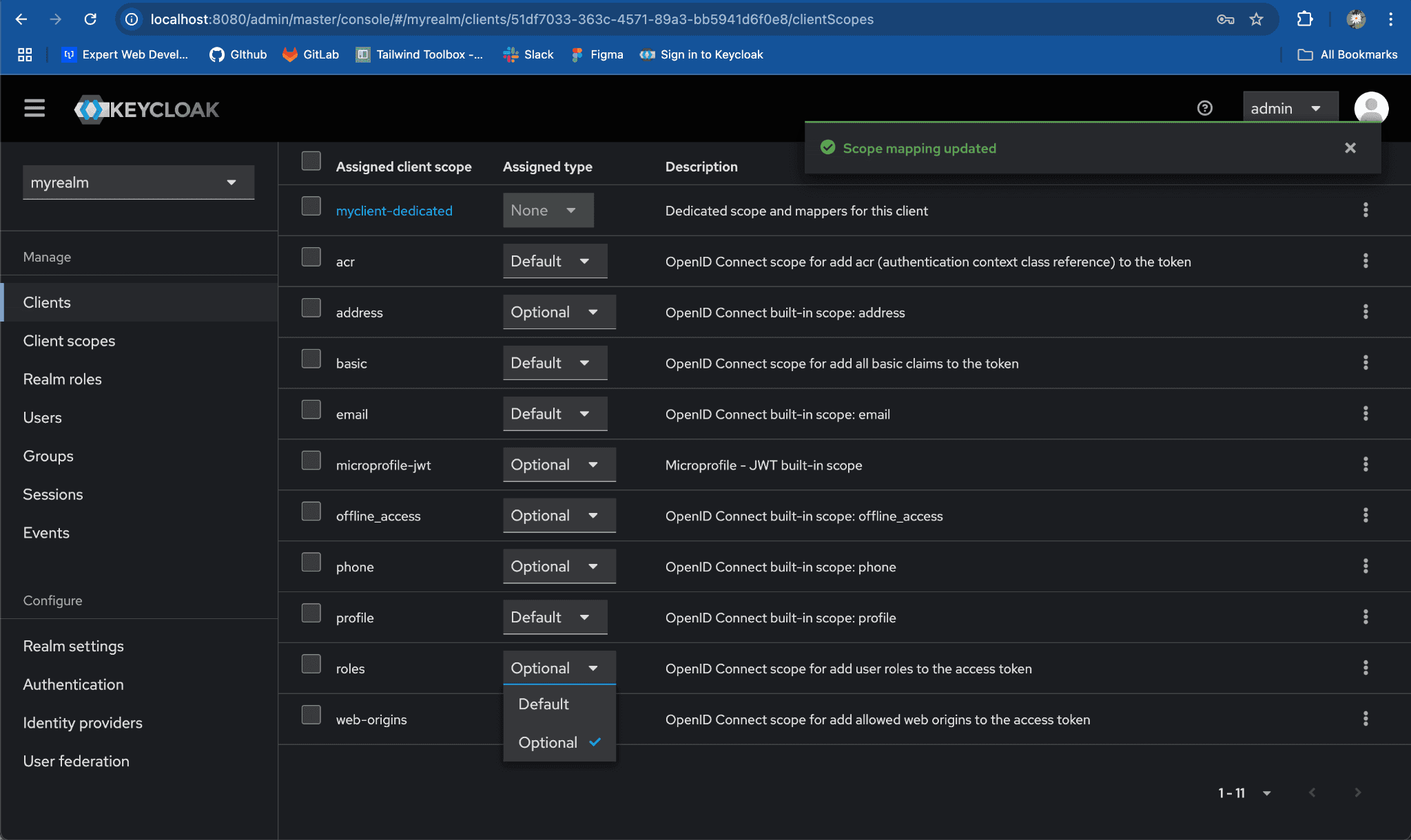 rolesscope underAssigned Client Scopescolumn -