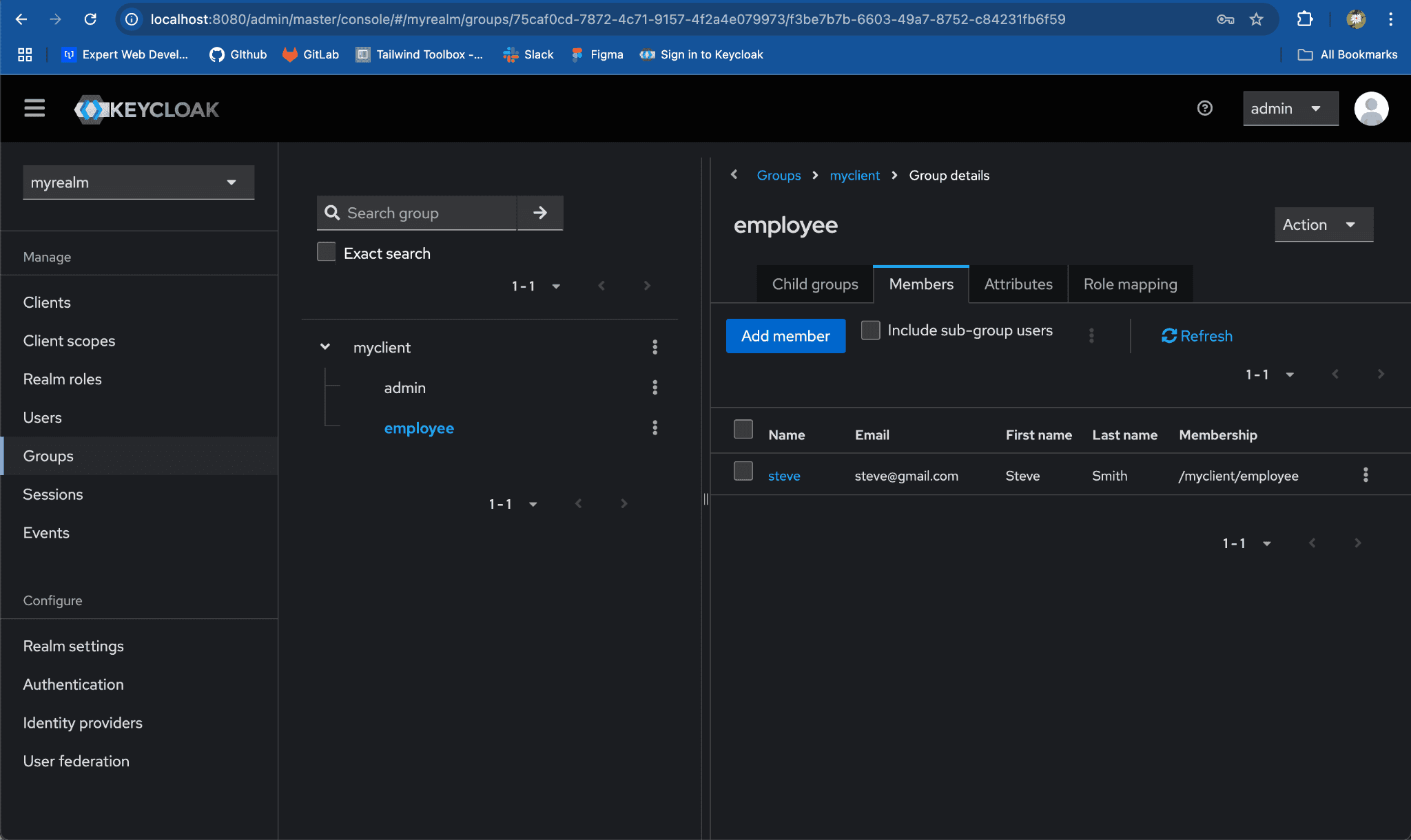 myrealmfrom the list of realms.